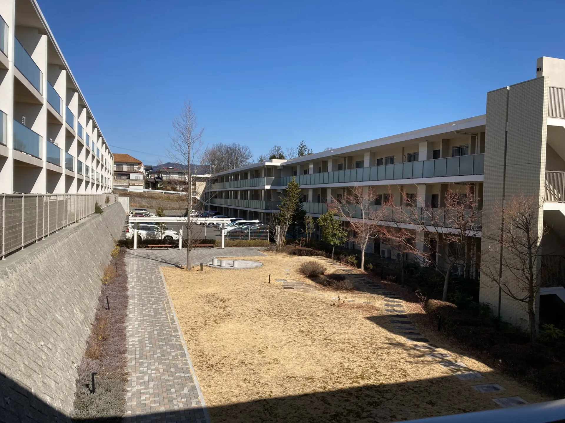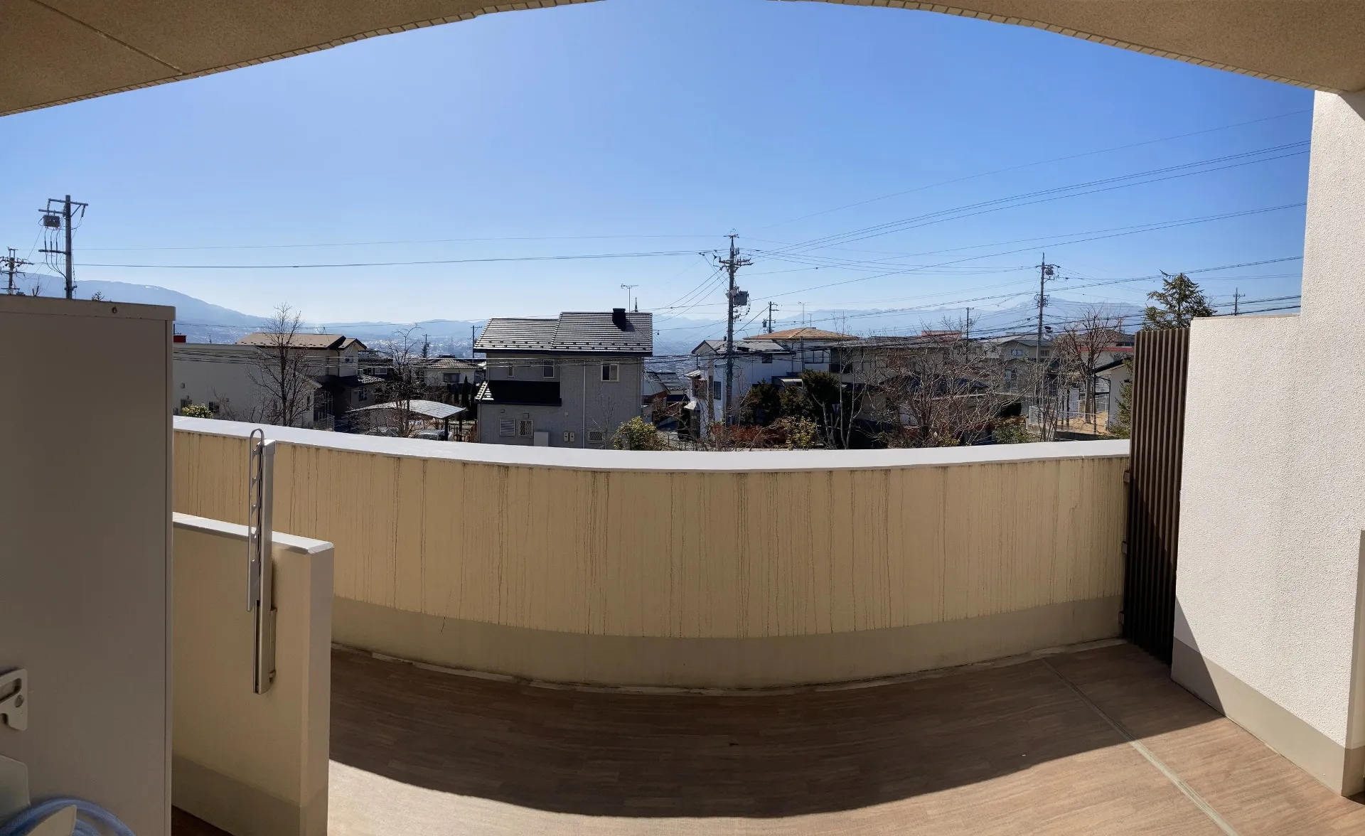 松本市街地を見下ろす南向き居室のオール電化の分譲型マンション。エアコン、照明、カーテン完備。ペットとの共生も応談。